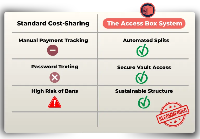 Just a simple system based on how real households actually split streaming costs — without awkward conversations, messy spreadsheets, or chasing people for money.