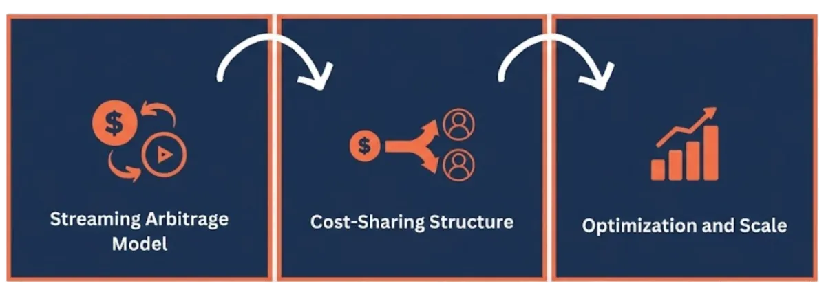 It's a step-by-step ebook that shows you how to split your streaming costs with friends or family — so you stop paying full price while others use your accounts for free. You'll get a pricing formula, access management system, and payment setup you can implement in 30 minutes.